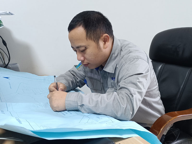 機關黨支部黨員、設備工程部三級干部許真正在認真核對工程施工圖紙。施工圖紙是工程建設的基礎,是編制工程施工計劃、材料采購計劃、勞動力組織計劃等的依據(jù),圖紙審核是工程項目的作業(yè)指導書,細致的核對能有效避免工程偏差,是優(yōu)質工程建設的關鍵性工作。